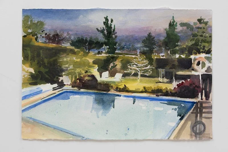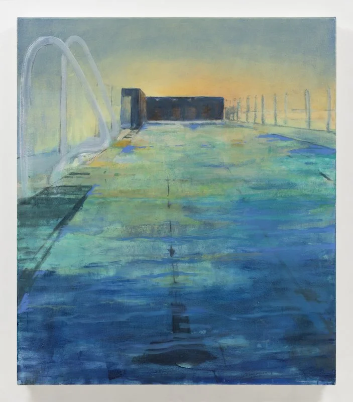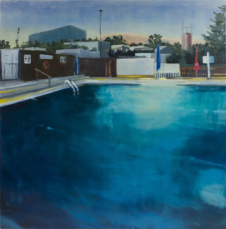 These paintings explore the boundaries between memories and places where I have swam and observed. I am drawn towards water and especially pools, the calm blue of an undisturbed pool, pulls me in.