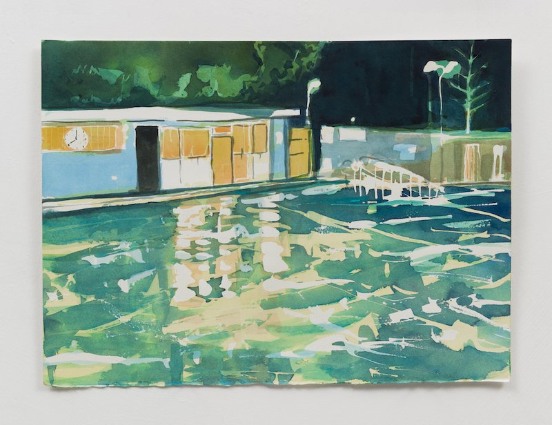 Night at the pool, Watercolour, 51cm x 41cm SOLD